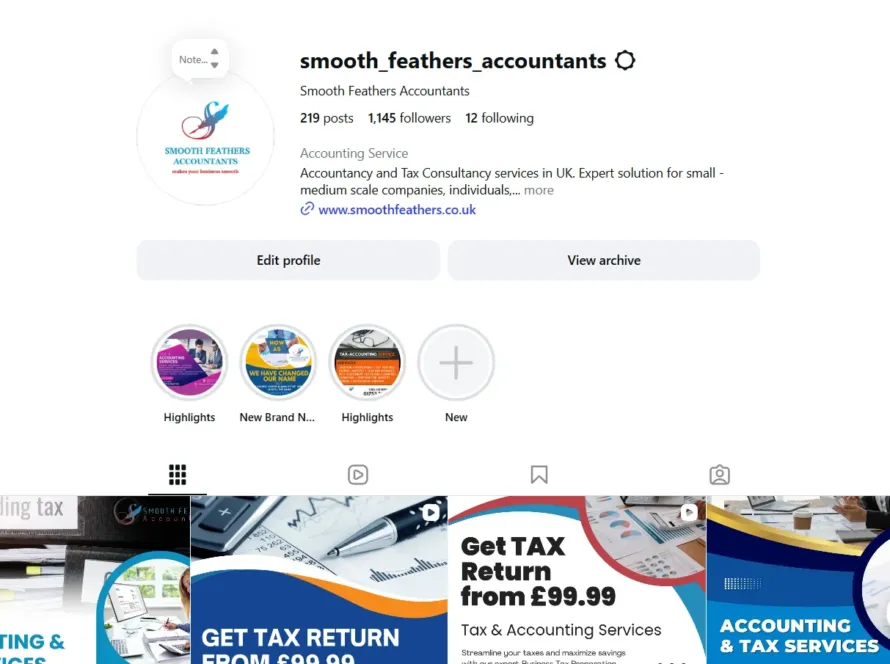 We manage the social media accounts for Smooth Feathers Accountants by creating professional flyers, financial awareness posts, and informational content for Instagram and Facebook.