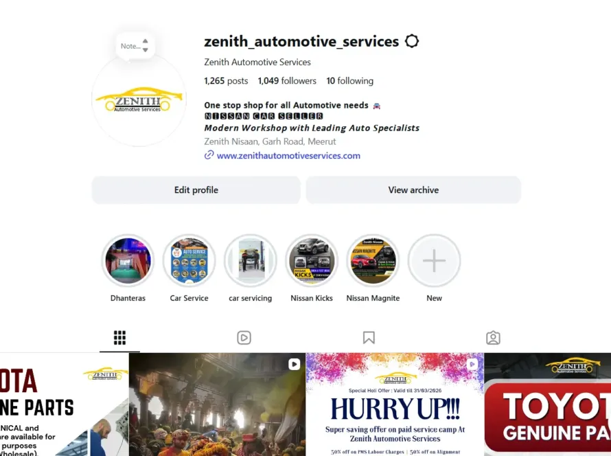 We manage social media content for Zenith Automotive Services by creating promotional graphics, service highlights, and engaging video posts for Instagram and Facebook.