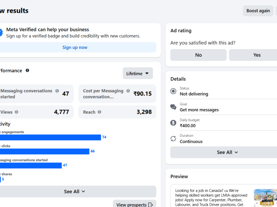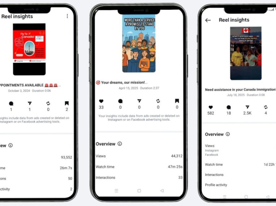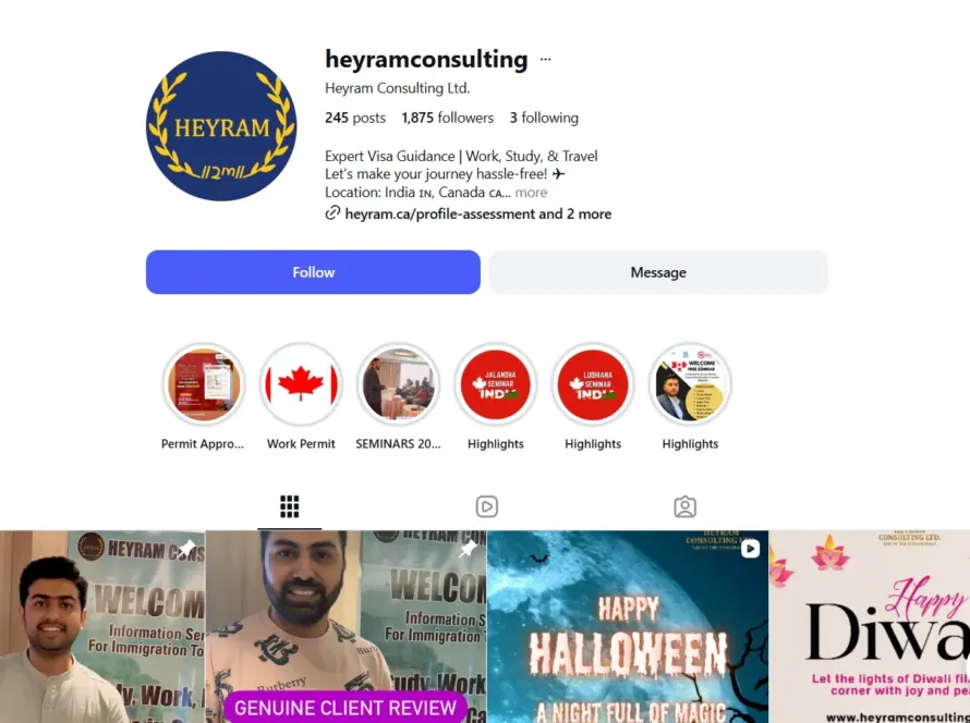 We manage Meta advertising campaigns for Heyram Consulting, running targeted ads for reel views, post engagement, lead generation, message conversions, and profile growth to promote immigration services.