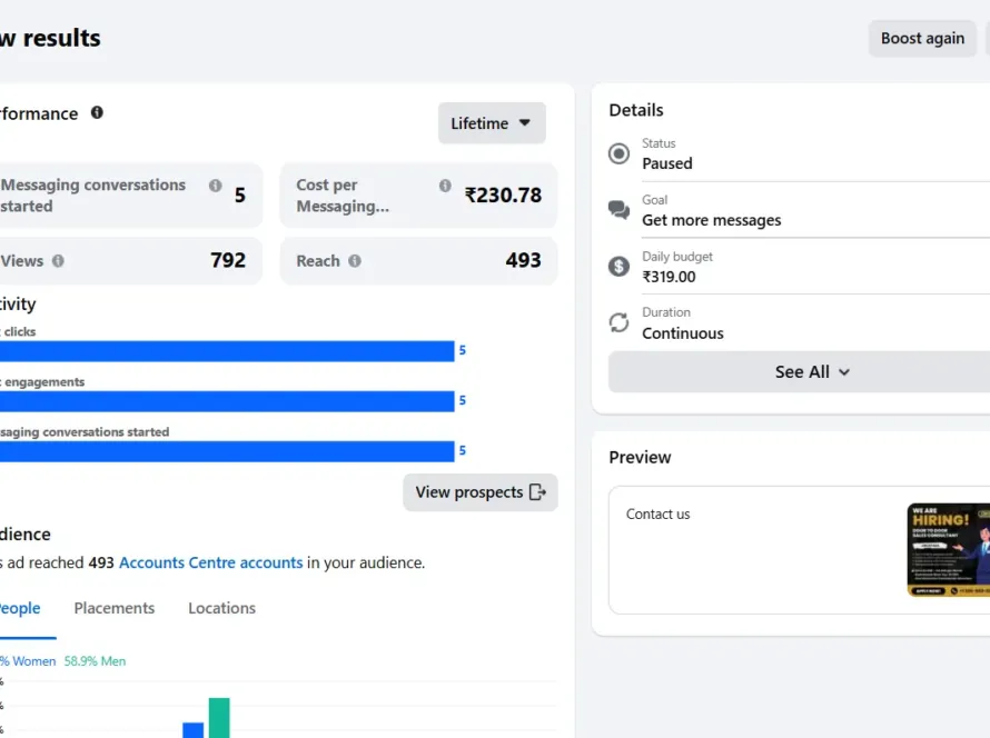 We manage Meta advertising campaigns for GKS Employment focused on generating employment inquiries through message conversion ads.