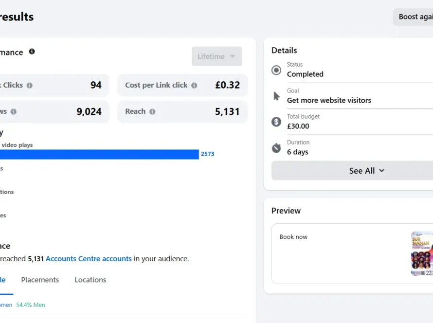 We manage Meta advertising campaigns for Sabrang, focusing on reel views, post engagement, profile growth, and website traffic to strengthen brand awareness and digital reach.